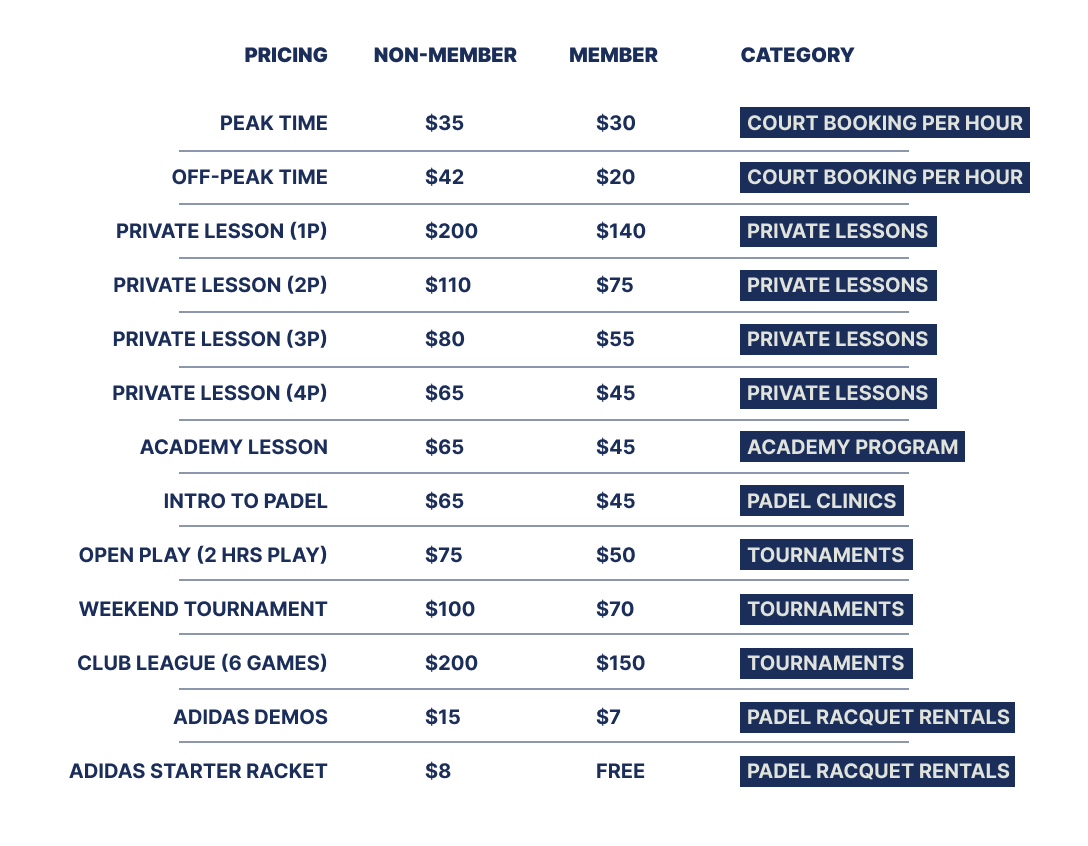 Play as much as you want, whenever you want. Contact us at memberships@padelhubusa.com to learn more and secure your membership today.